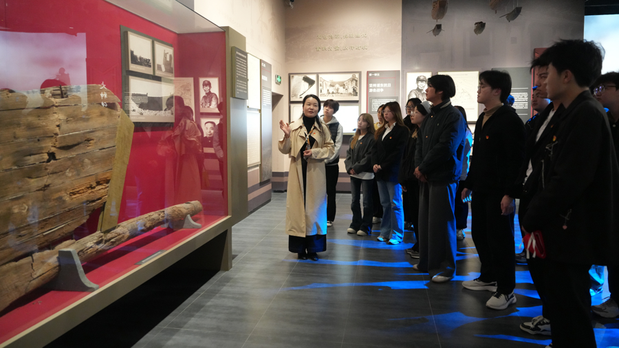 这堂课莫得PPT,莫得板书。历史场景即课堂,义士遗物即教具,后东谈主论述即课本。学生们在全息成像、VR规复的硝烟中“走进”汇角构兵,在什物船舵前“目送”南渡枭雄。师生们在实景实境中,完成了一次真切的精神浸礼与念念想淬真金不怕火。