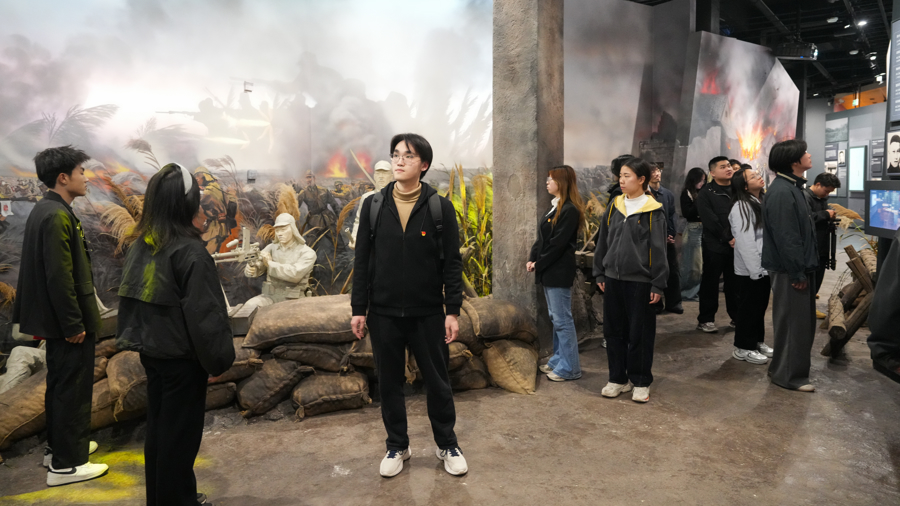 上海电机学院材料学院学生党员付倩在千里浸体验后感叹谈:“枪弹轨迹仿佛从耳边掠过,让我信得过懂了‘为有葬送多壮志’的分量。”