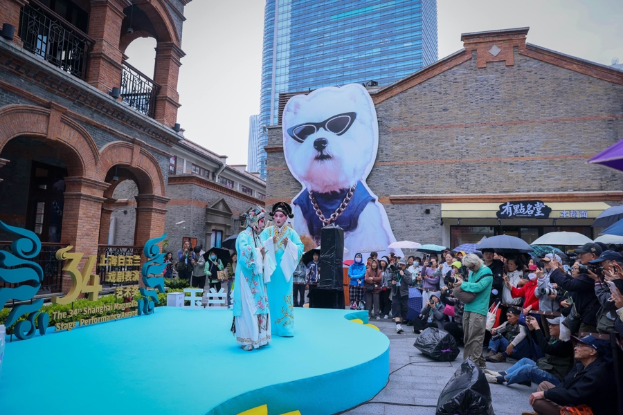 迎着不雅众的叫好声、掌声,钱惠丽、王珮瑜等戏曲名家轮换登台献演……第34届上海白玉兰戏剧扮演艺术奖戏剧嘉年华首场快闪献艺,今天在滨港生意中心今潮8弄举行。尽管天公不作好意思,但露天舞台仍被围得里三层外三层,不少市民搭客冒雨安身观赏。