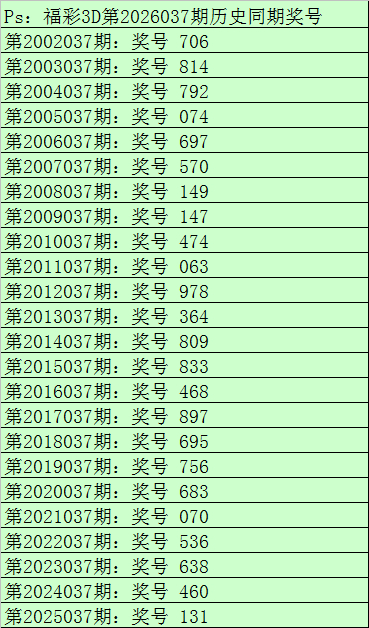 财迷福彩3D第2026037期空洞推选: