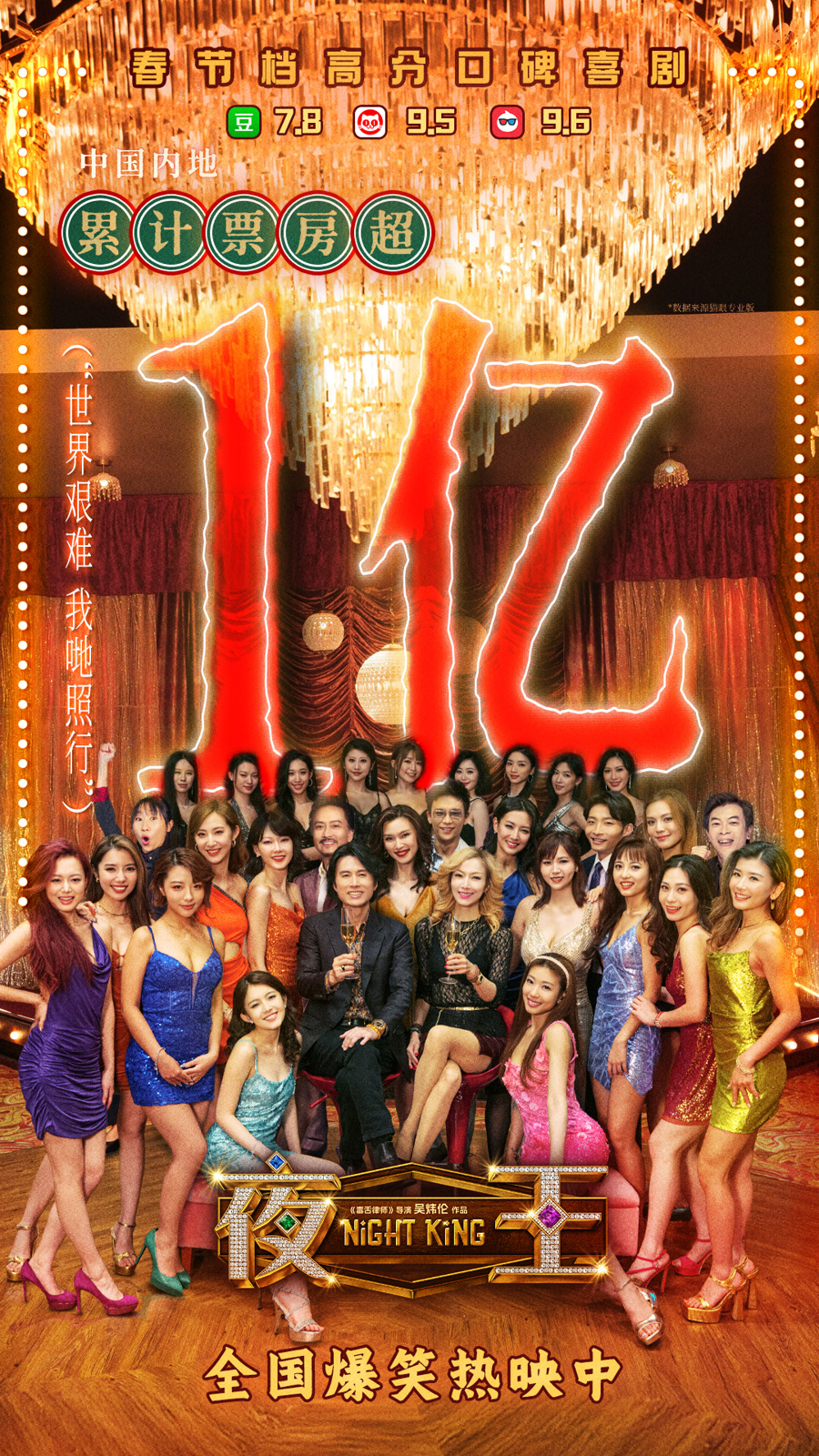 《夜王》以2012年的中国香港为布景,呈文东昼夜总会被收购后,司理欢哥(黄子华 饰)与前妻V姐(郑秀文 饰)被动相助,辅导女公关团队派遣家团操控危急的故事。影片导演和主要演员来自2023年香港贺岁笑剧爆款《毒舌讼师》原班底,看成春节唯独粤语笑剧,影片不仅聚焦“夜场”形描画色的东说念主物,也将常人物“笑过一天哭也过一天”的估客生活智谋发达得长篇大论。