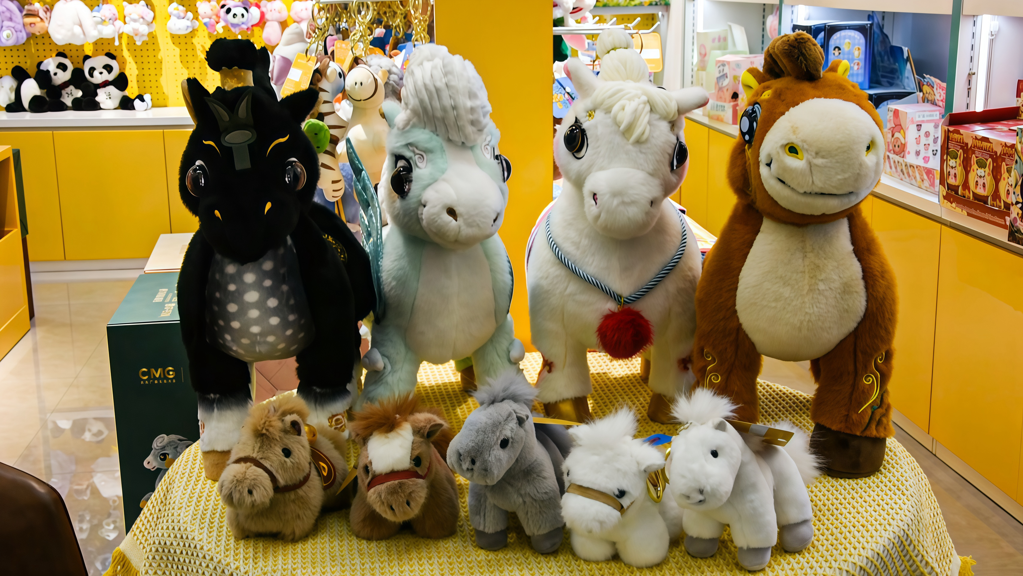 义乌国际商贸城“萌玩汇”店铺内陈列的部分“马”公仔。新华社记者刘澈 摄