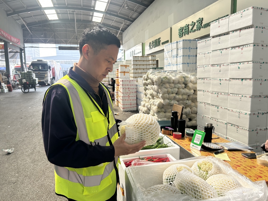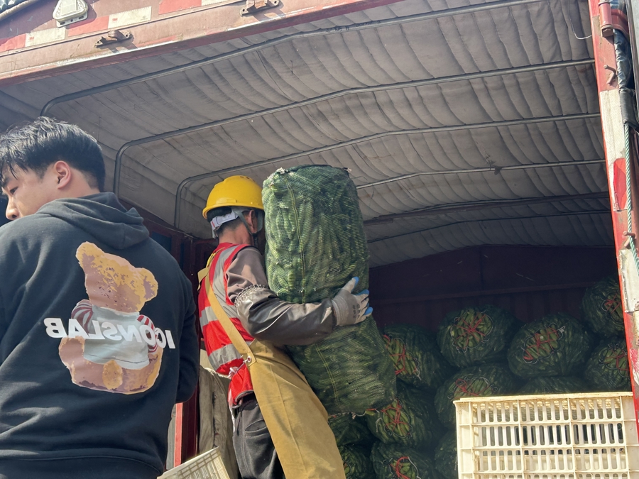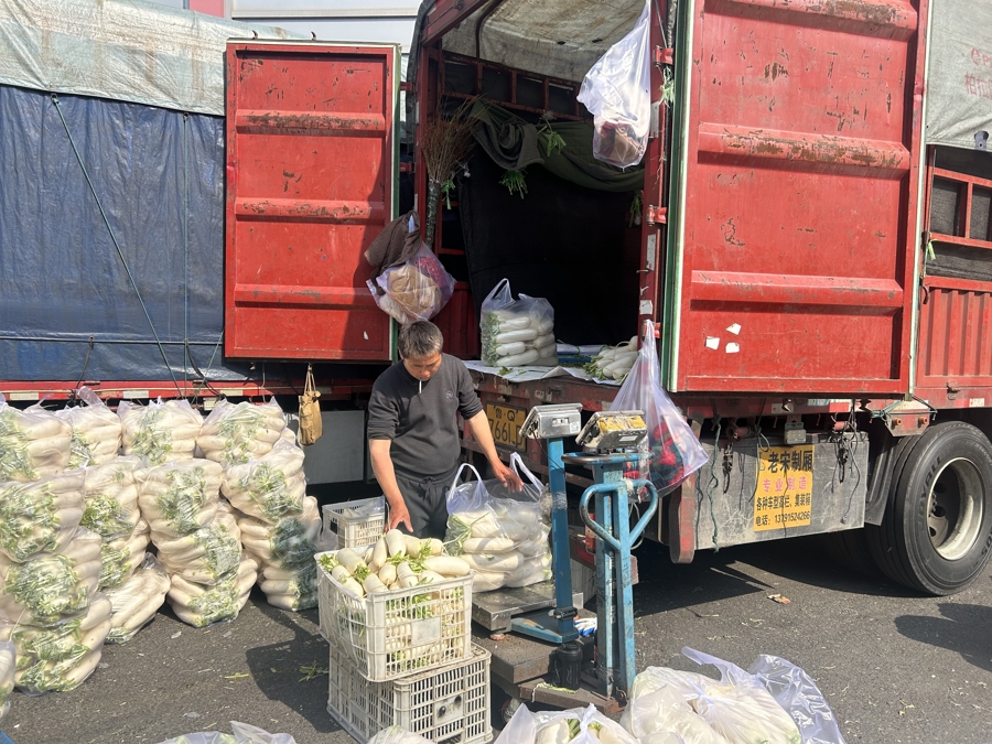 春节备货期,阛阓内卸货、装车不断,三轮车穿梭交往,将一箱箱清新蔬菜奉上采购商的货车。采购商来自四面八方——超市供应商、电商平台、餐饮店采购团队,日均收支货车达到1800多辆。